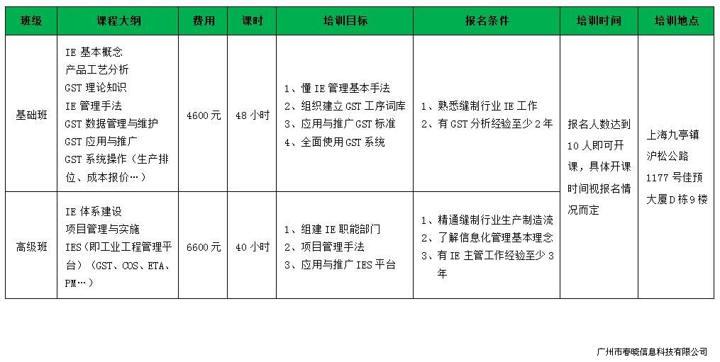 鉴于目前缝制行业IE方面的人才比较欠缺,以及众多行业从业人员希望有学习的机会,春晓将根据行业需求,携手创定公司,在上海组织开展IE相关培训班,欢迎大家报名!具体如下: